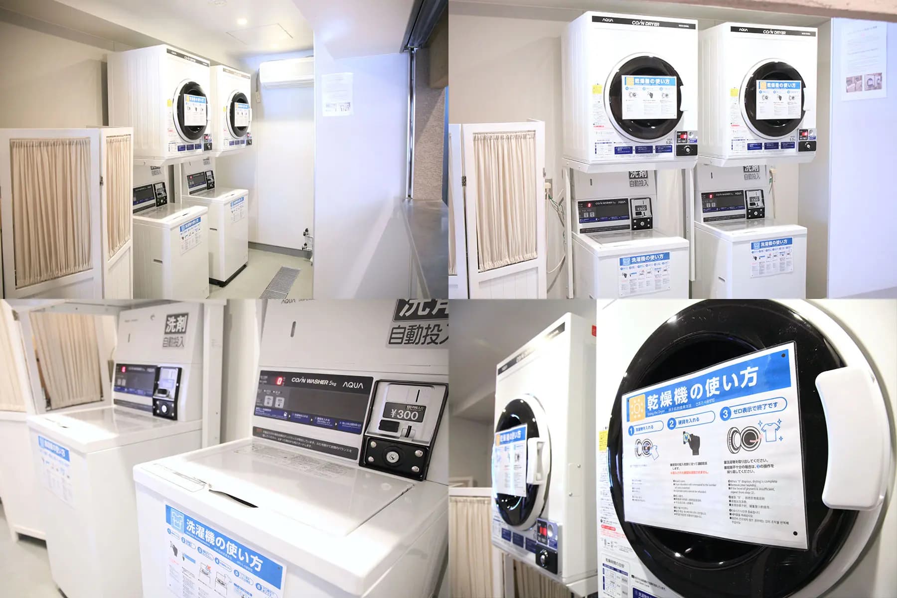 1Fラウンジには、ランドリースペースがございます。洗濯機、乾燥機を各2台設置しておおり、ご宿泊ご利用者様は、有料にてご利用いただけます。長期滞在でも快適にお過ごしいただけます。