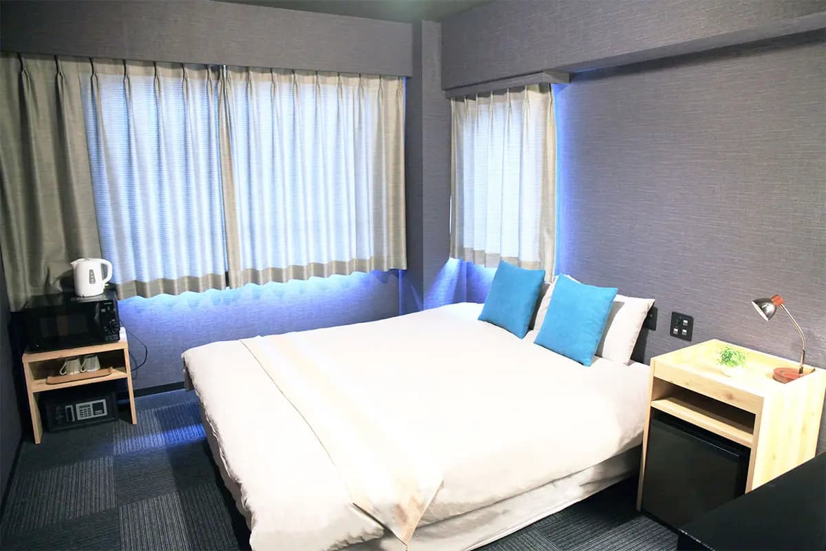 スタンダードダブルにソファベッドを設置。最大3名利用可能。
