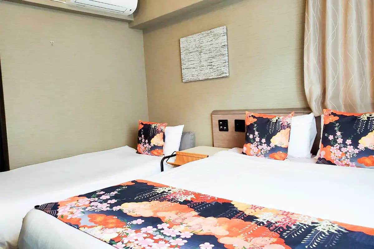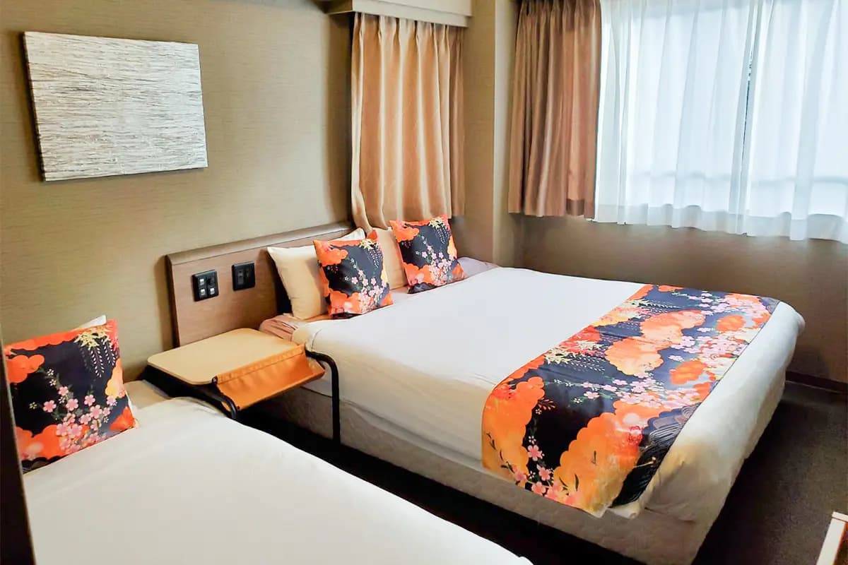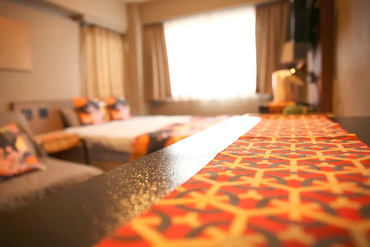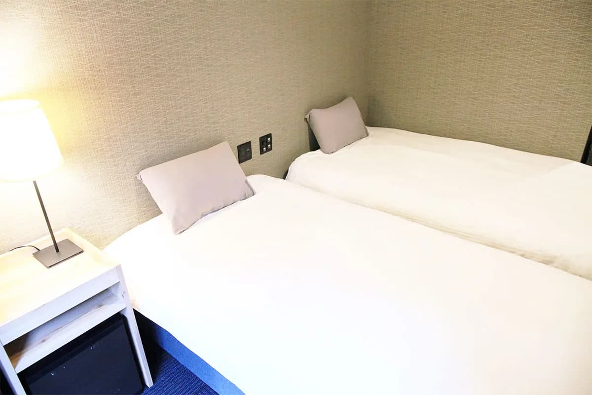 シングルベッド2台・ソファーベッドを1台利用することにより、最大で3名様までご利用可能なお部屋となります。 中央にスペースを設けているので、長期滞在利用におすすめです。